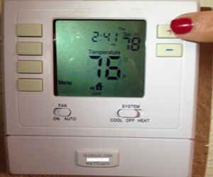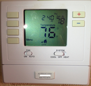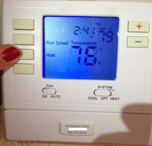 5. Notice now the word (Hold) under the Set At from this point forward only use the +(plus) or –(minus) buttons to adjust the temperature.The programming function of the thermostat is now bypassed.